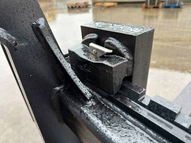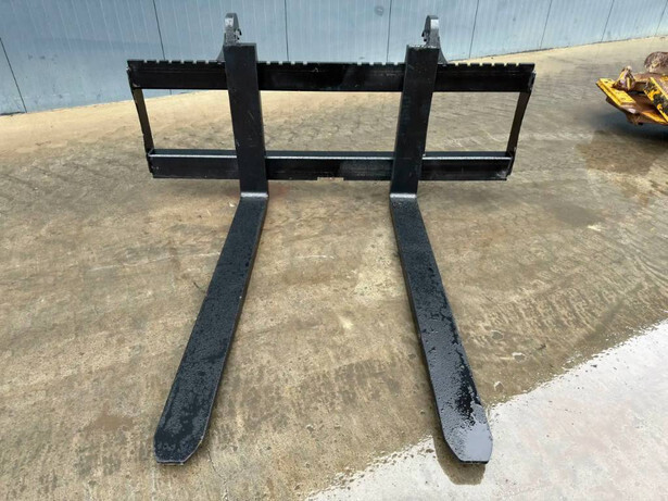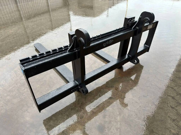 Unused wheelloader forks with Volvo / ISO / Lundberg quick coupling system suitable for Caterpillar 938M. The length of the forks are 1.60 mtr. The width of the pallet frame is 2.00 mtr and the maximum capacity is 8000 kg.