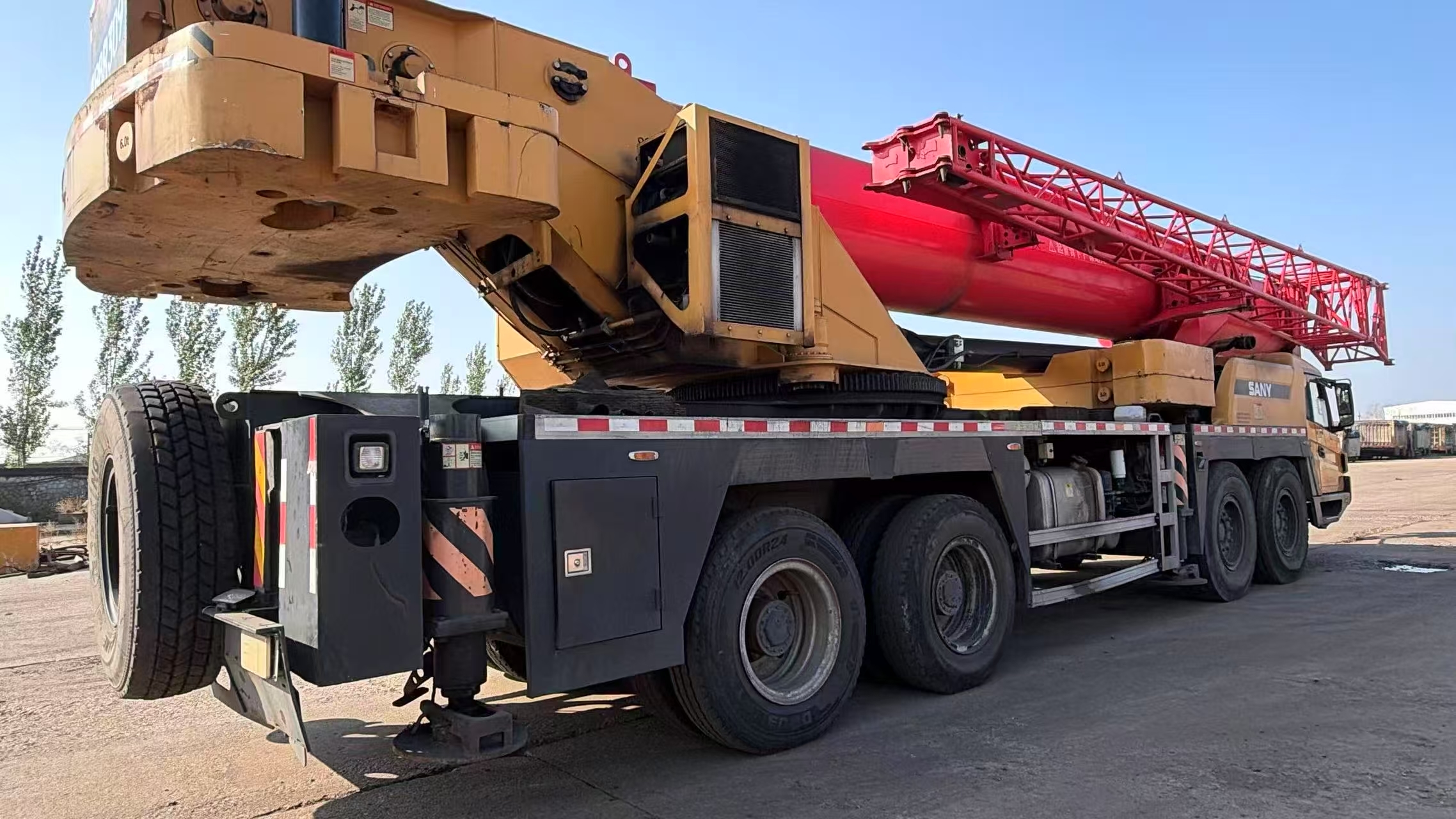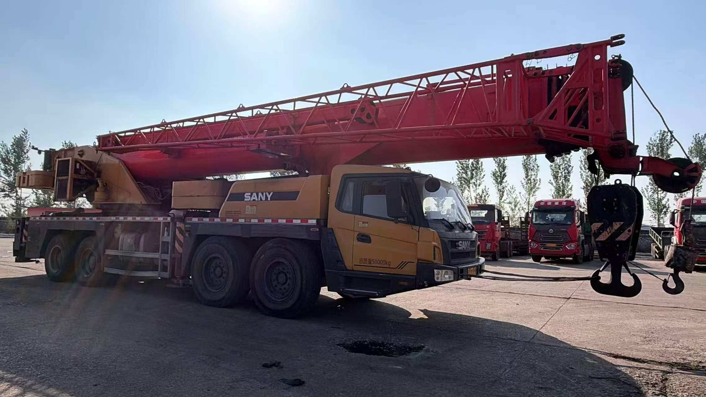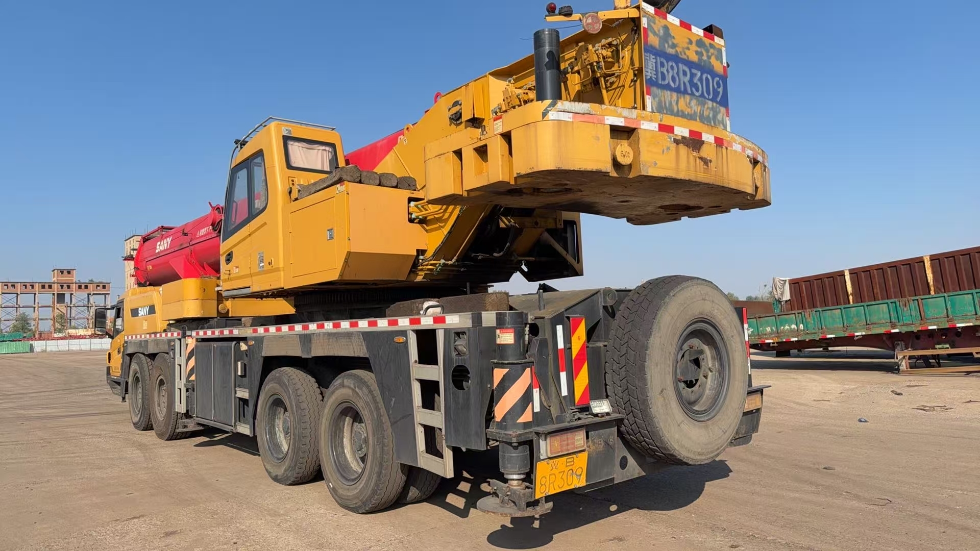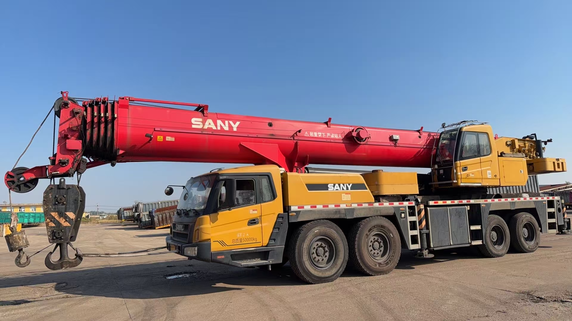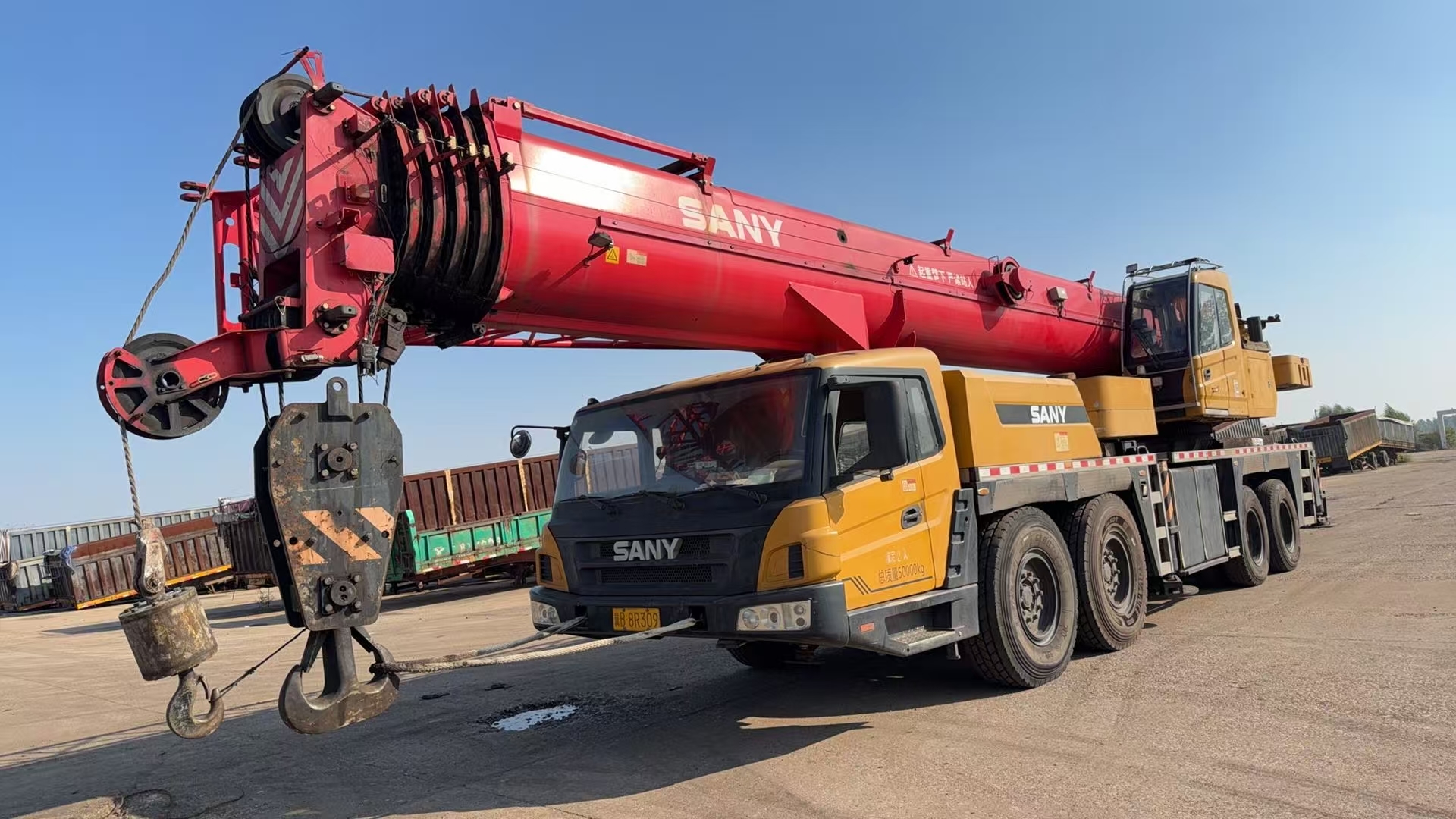 2022 USED CRANE SANY STC800e5 80T GOOD CONDITION TRUCK CRANE The STC800E truck crane features a high-capacity chassis, equipped with a Wuxi 375-horsepower large-torque engine, Fastrat 10-speed transmission with synchronizers, heavy-duty axle, and a first-class brand dual-variable piston pump with a maximum climbing angle of 45%. It has a fuel consumption of 43L/40L per 100 kilometers and a large-capacity fuel tank with a capacity of 40 liters, which enhances the vehicle's endurance by 15%.