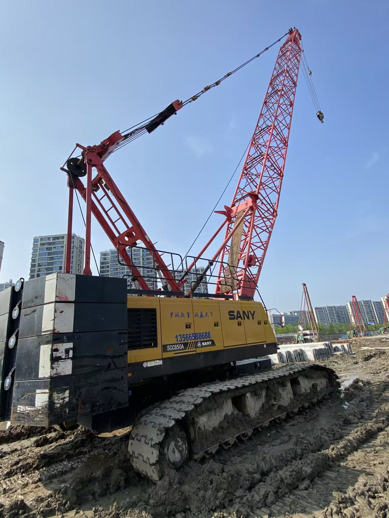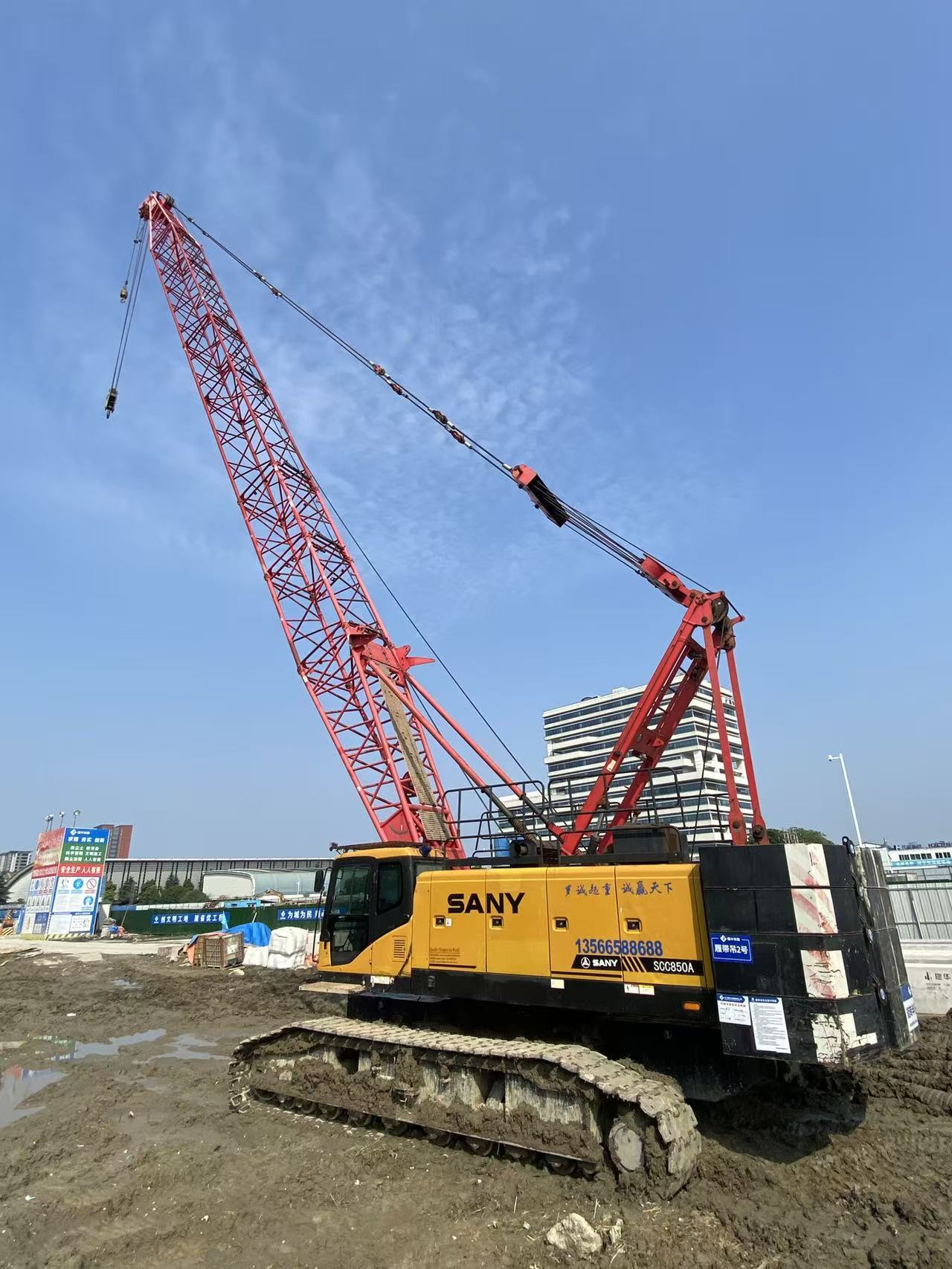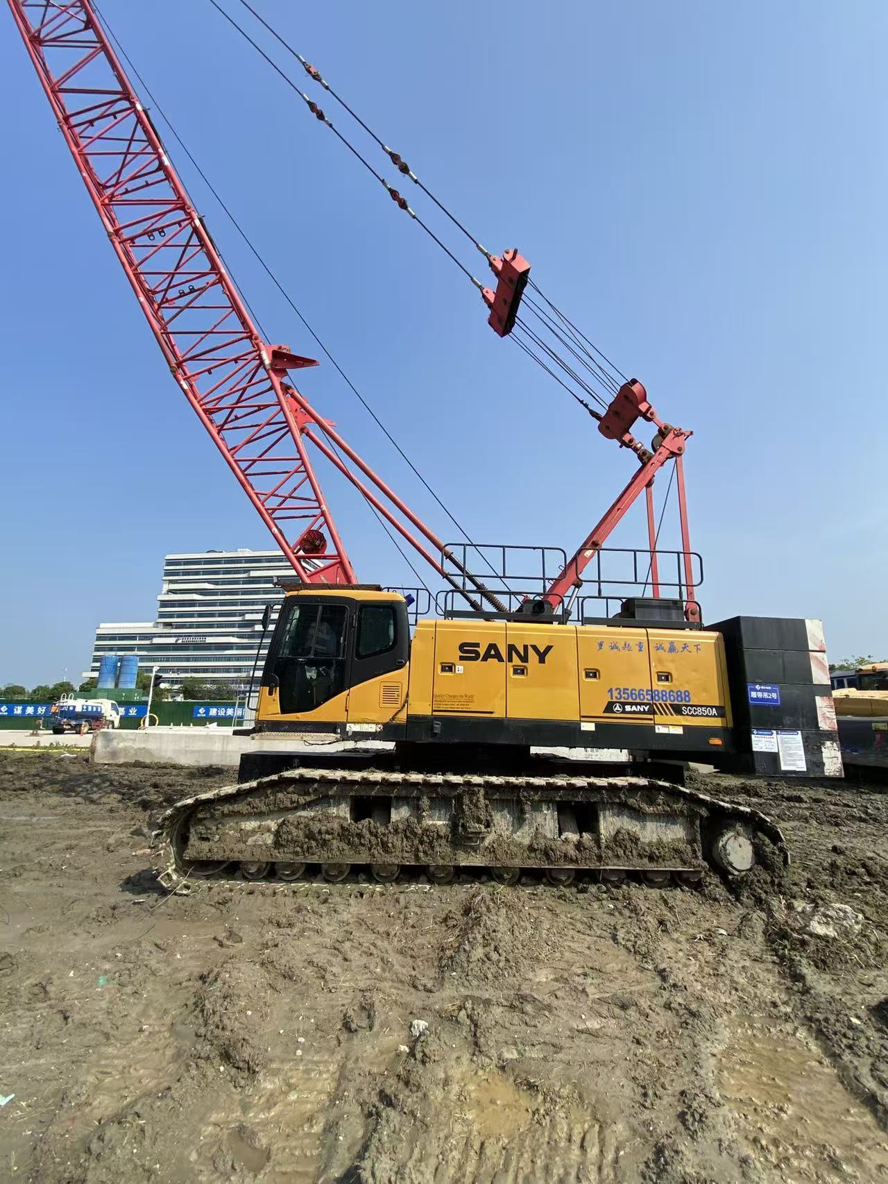 2019 SANY SCC850A 85-Ton Hydraulic Crawler Crane The SANY SCC850A is a heavy-duty hydraulic crawler crane specially designed for infrastructure construction, bridge engineering, steel structure erection, wind power auxiliary hoisting and large equipment installation. With high lifting performance, stable crawler chassis, intelligent control system and strong terrain adaptability, it is widely used in various heavy lifting construction scenarios.
