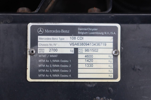 Brand: Mercedes-Benz Model: Vito Chassis number: VSA63809413436719 Date of first registration: 2002 Fuel: Diesel Transmission: Manual Mileage reading: Not known Color: white