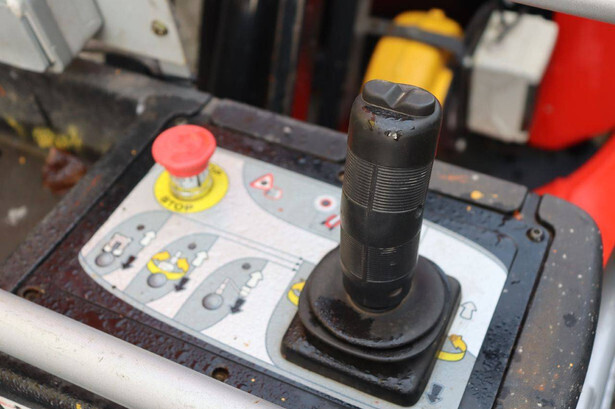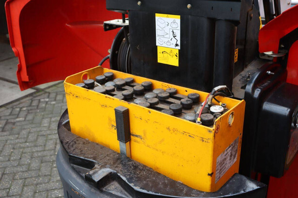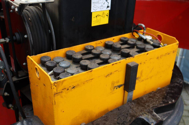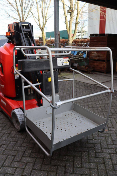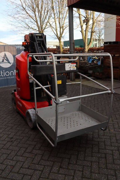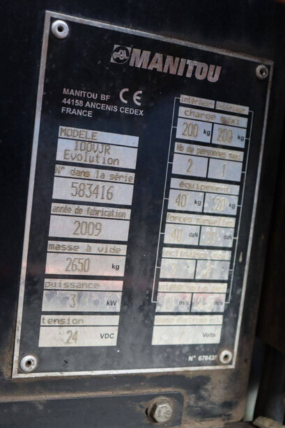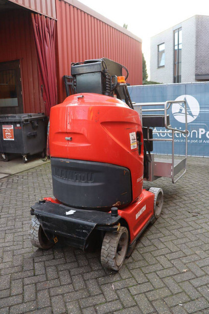 Brand: Manitou Type: 100VJR Evolution Serial number: 583416 Year of construction: 2009 Fuel: Electric Lifting capacity: 200 kg Working height: 9.9 m Machine weight: 2650 kg Chassis: Wheels Type: Mast lift Tires: Solid tires Color: red
