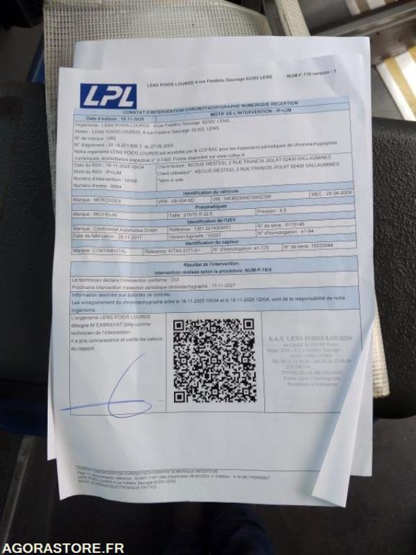 Etat des pneus: USURE 11 % (Les pneumatiques sont facturés séparément - Valeur des pneumatiques : 508 €)