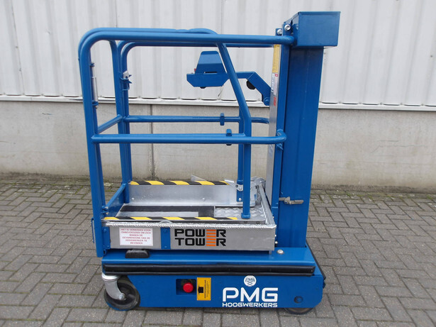 Brand: Power Tower Model: Nano SP Type: Mast lift Serial number: 10812812D Year of construction: 2012 Read operating hours: no counter Fuel: Electric Working height: 4.50m Lifting capacity: 200kg Machine weight: 500kg Wheels: non-marking wheels