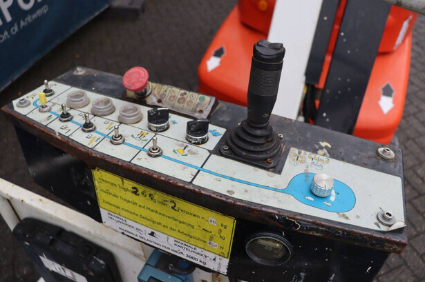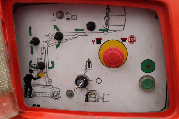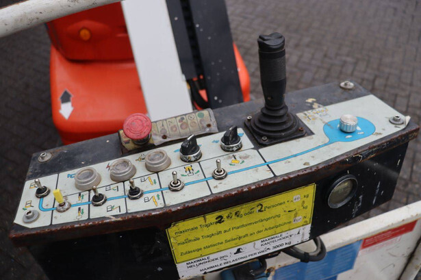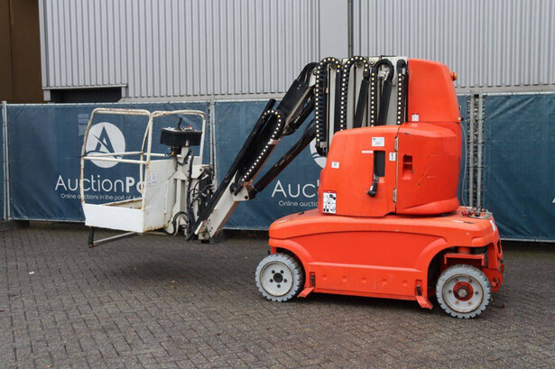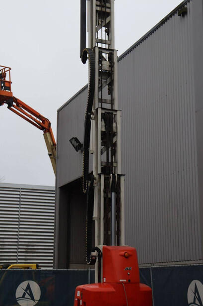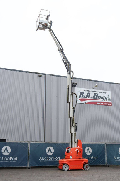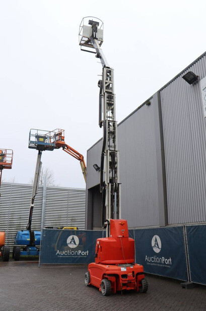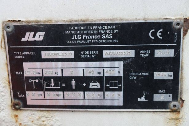 Brand: JLG Type: TOUCAN_1310 Serial number: A300035335 Year of construction: 2013 Fuel: Electric Lifting capacity: 200 kg Working height: 13 m Operating hours read: 1140 h Machine weight: 5600 kg Chassis: Wheels Type: Mast lift Tires: Solid tires Color: red
