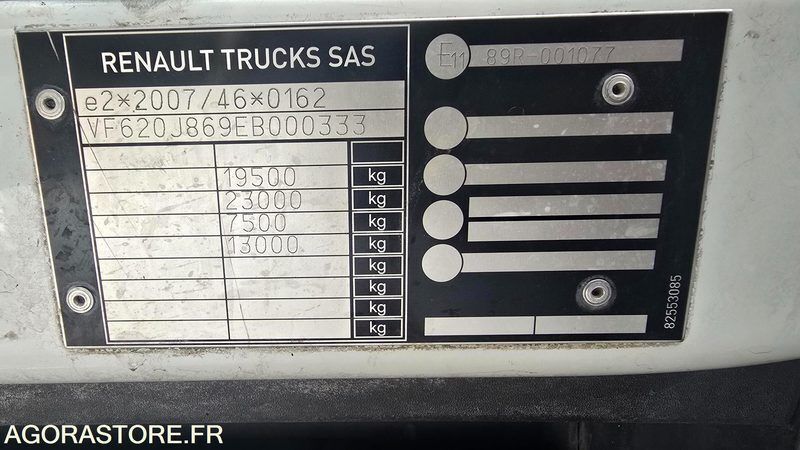 Renault D WIDE Color: white Power: 326 Engine volume: 7698 Fuel: diesel Axle number: 2 FR: IMPORTANT: Les véhicules sont vendus en l’état. Les acquéreurs sont invités à visiter le véhicule en amont car aucune pièce manquante ne sera fournie (de sécurité ou autre) lors de l’enlèvement. Certains véhicules n’ont pas été utilisés pendant un certain temps, le démarrage n’est donc pas garanti et aucune assistance ne sera fournie. Des réserves sont émises sur le départ par la route des véhicules (fonctionnement mécanique, éléments de sécurité, …). Nous recommandons vivement un enlèvement des véhicules achetés par véhicule plateau. Si toutefois vous maintenez un convoyage par la route, notez que les contrôles techniques n’étant pas tenus à jour, une plaque W Garage sera nécessaire. Une fois la vente conclue et le véhicule enlevé, aucun dédommagement sera possible. Une fois le véhicule vendu il n’est plus assuré par le vendeur, pensez à assurer les véhicules à partir du jour du retrait. Le prix TTC figurant sur la facture pro forma d’Agorastore est le montant net à payer Renault D WIDE - Bennes à ordures Caractéristiques principales Mise en circulation : 04/12/2014 Kilométrage : 136873 kms Motorisation : Diesel Carrosserie : Benne à ordures Places assises : 3 Camion réformé dans le cadre de la politique de renouvellement de la flotte Véhicule ex-service (collectivité) entretien régulier et rigoureux État général Intérieur en bon état (voir photos) Carrosserie avec traces d’usage (voir photos) Véhicule en bon état peut partir par la route Remarques Véhicule vendu en l’état sans garantie Ref No:415112 VIN: VF620J869EB000333
