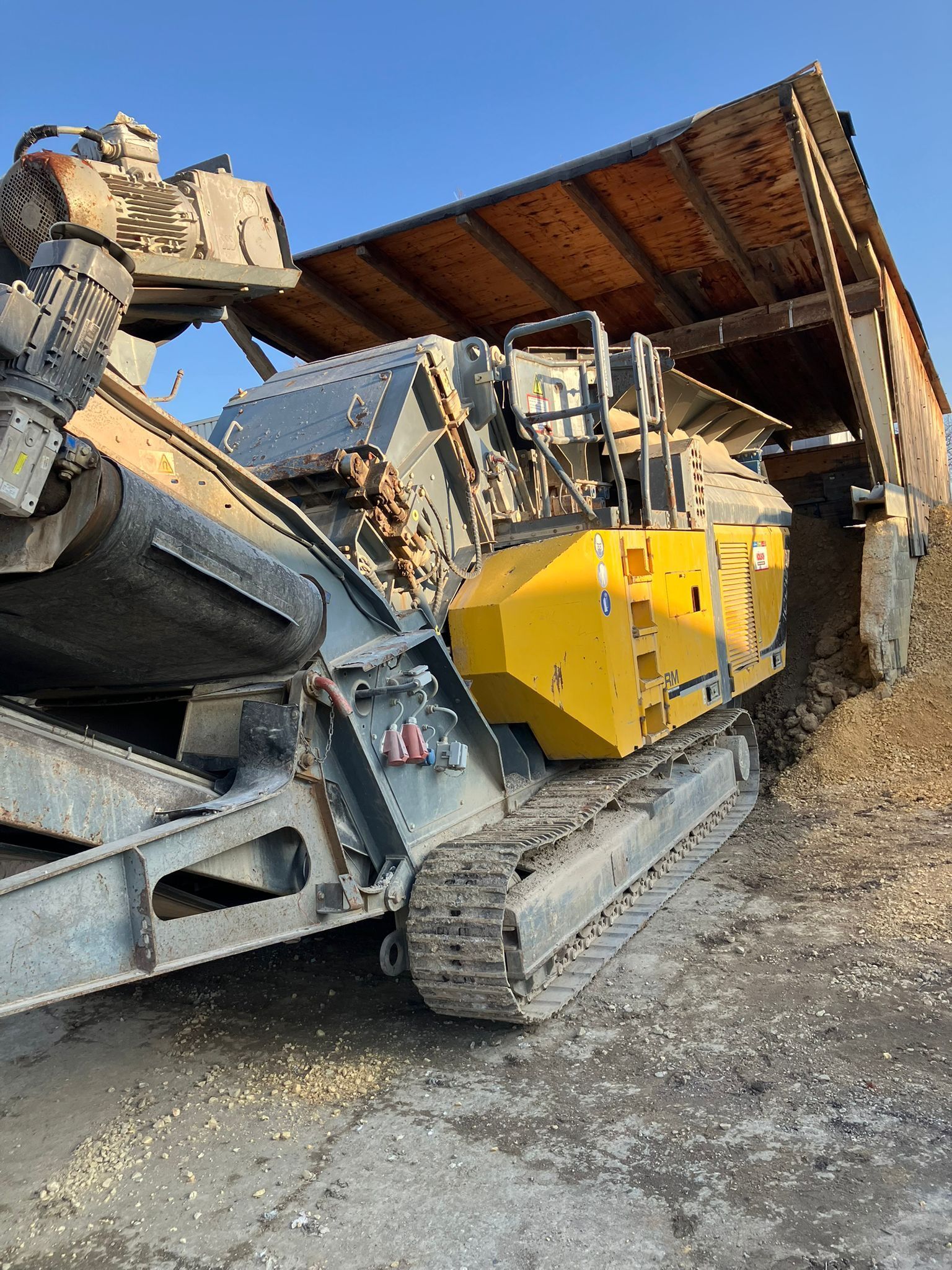 Rubble Master RM100GO! Weight around ca 29,000 kg Engine / Type CAT Power / HP / KW 320 / 235 execution Impact crusher CE-certificate CE-certified Location Plattling, Germany other details Magnetic belt - With sieve unit - Weight: ca 29 to