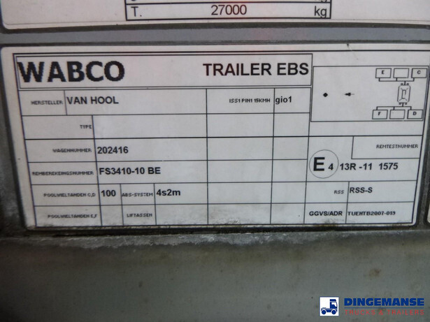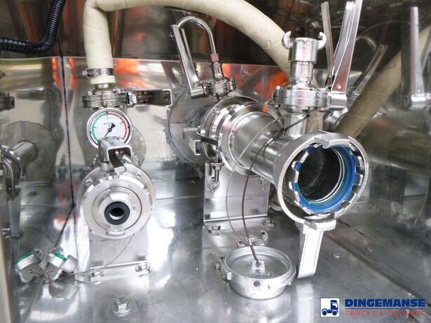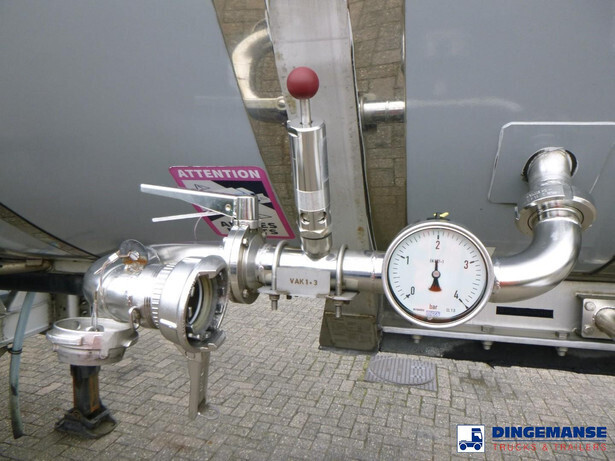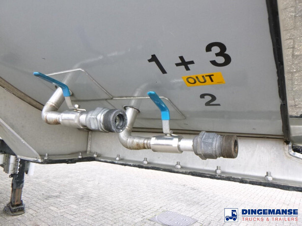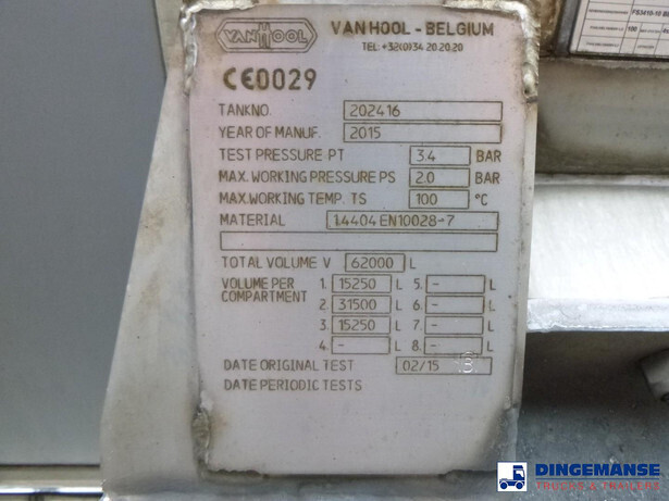 Insulated stainless steel food tank, Capacity 62000 liters, 3 Compartments (15250; 31500; 15250), Year of construction 2015, Tank material code 1.4404 EN 10028-7, Test pressure 3.4 bar, Max working pressure 2.0 bar, Steam heating, Air suspension, BPW axles, Disc brakes, ALloy wheels, ABS, Shipment dimensions 1380x250x360 cm