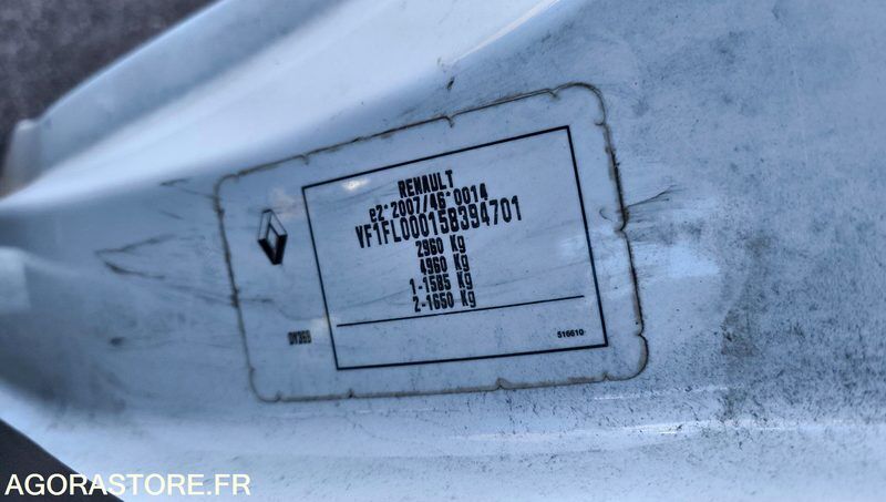 Renault TRAFIC Color: white Power: 121 Engine volume: 1598 Fuel: gas Axle 1 common tyre size: 205 /65/16 Conditioner: 1 Gearbox type: manual Overall height: 1.95 Overall length: 5 Overall width: 1.96 FR: Type de véhicule FOURGON Etat carrosserie: Bon état Etat intérieur: Bon état Etat des pneus: Bon état Transmission: AVANT Version: DCI 120 Etat soubassements: Bon état Porte latérale ouverture gauche et droite Tiroir et placard de rangement Compteur électrique Convertisseur 600 w Gyrophare Véhicule roulant Moteur tournant Un rapport d'inventaire est fourni dans la rubrique « documents » De quelques décalcomanie sur le contour du véhicule Fixation pare-choc avant droit déboîté Porte gauche compartiment arrière légèrement abîmé Manque antenne Ref No:413661 VIN: VF1FL000158394701