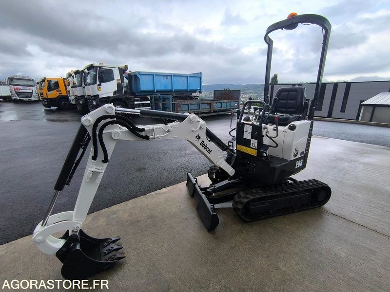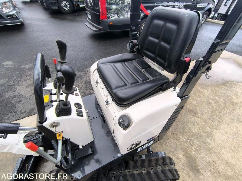 Bobcat E08 Weight: 1000 Power: 10.2 FR: Type de véhicule Mini Pelle IMPORTANT: Mini Pelle 1T de 761h en excellent état ! Nombre de godets: 1 poids total en charge: Très bon état ! Voie Variable ( écartement chenilles) Moteur Kubota Mini Pelle 1 tonnes Modèle : E08 Horamètre : 761 h compteur Poids : 1.04 Tonnes Voie Variable ( écartement chenilles) Chenilles caoutchoucs 180mm Attache rapide mécanique Ligne auxiliaire Moteur Kubota Déport de pied de flèche Feux de travails Vendu avec 1 godet Bobcat 30cm Matériel en très bon état ! Ref No:411685