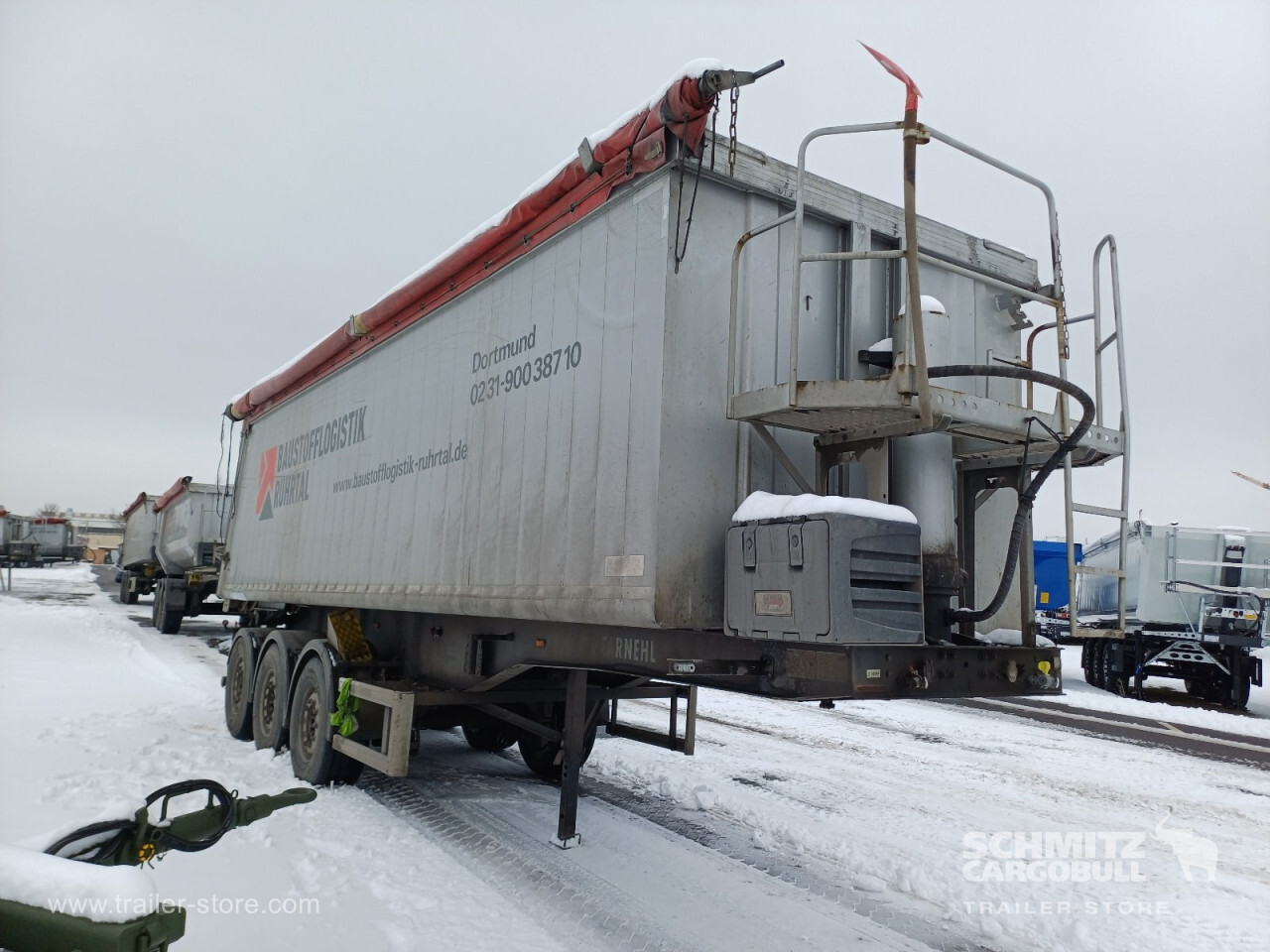 Remarks: **Safety**\\Hinged rear underrun, Antilock Braking System ABS\\\\**Exterior**\\Air suspension, Lift axle front, Toolbox, Exterior pendulum tailgate, Roof rolling tarpaulin, Access platform, 1x15 pin plug, Light alloy rims\\\\**Brake system**\\Disc brake\\\\**Loading area**\\Length 8.200 mm, Width 2.300 mm, Height 1.900 mm, Volume 35 m³\\\\**Tyre sizes**\\1. Achse: 385/65 R22.5 , Tread depth: 9 mm / 3 mm, 2. Achse: 385/65 R22.5 , Tread depth: 14 mm / 12 mm, 3. Achse: 385/65 R22.5 , Tread depth: 13 mm / 3 mm\\\\**Other dimensions and weights**\\GVW: 35.500 kg\\\\----