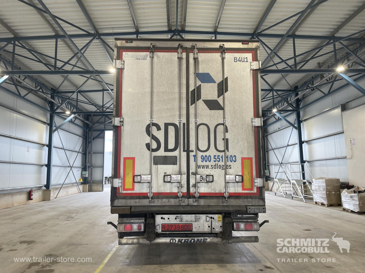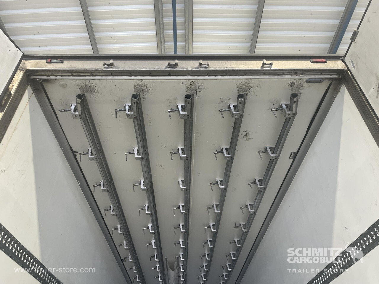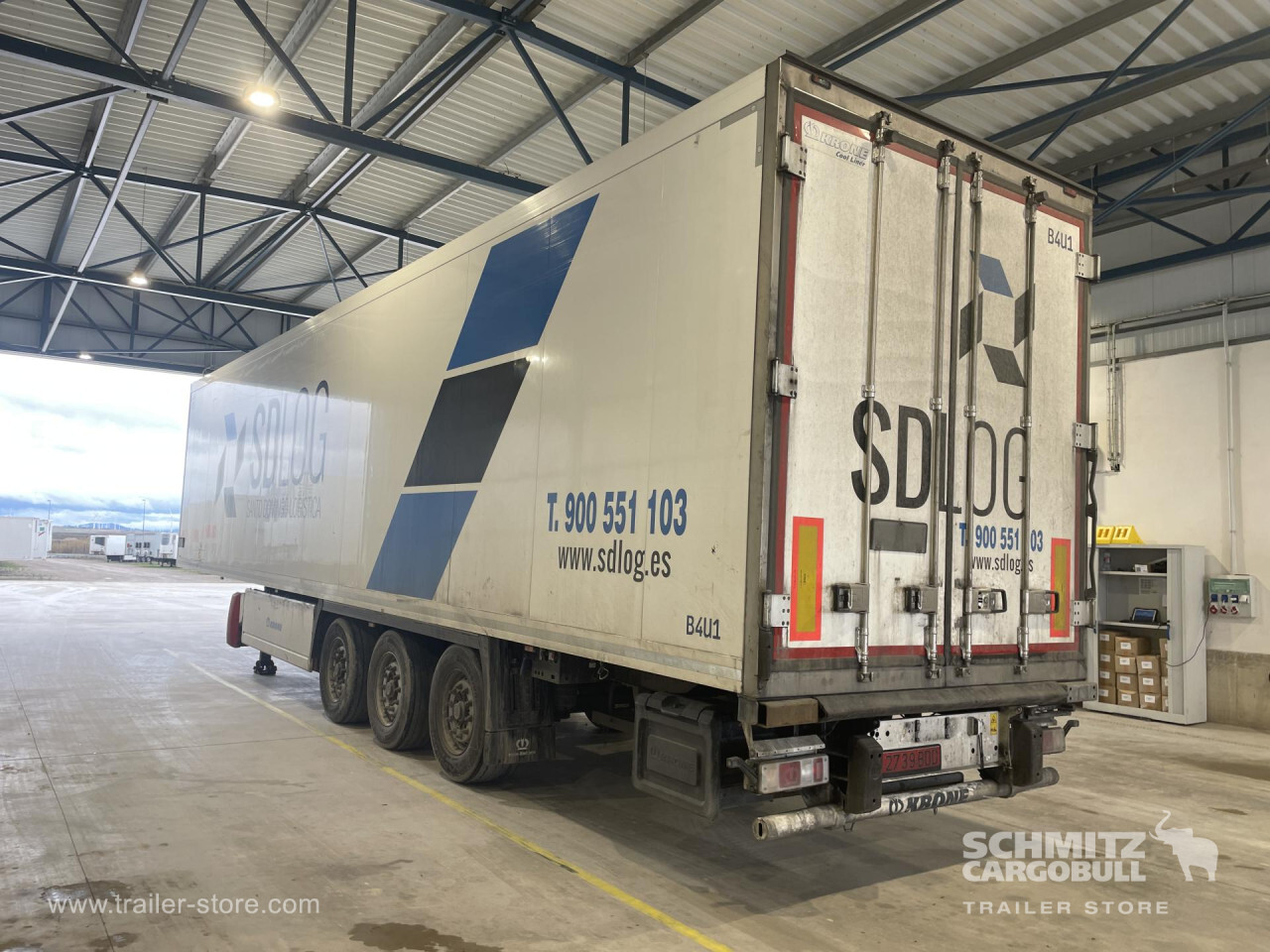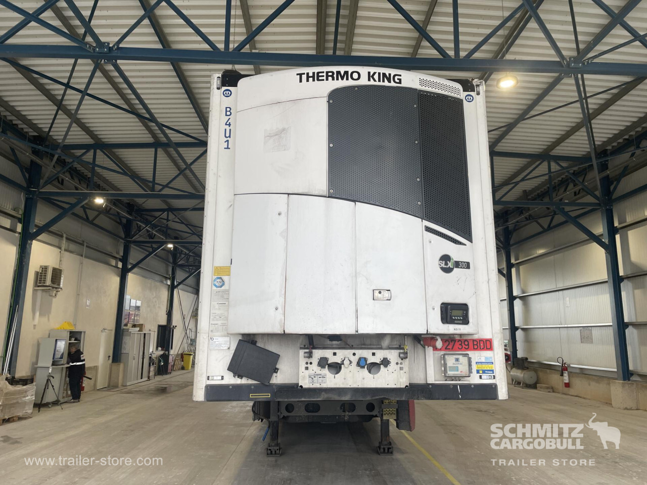 Remarks: **Safety**\\Antilock Braking System ABS, Fire extinguisher holder\\\\**Exterior**\\Air suspension, Pallet box, Toolbox, Spare wheel carrier double, Bolted chassis, Gantry doors, 1x15 and 2x7 pin plug\\\\**Cargo securing**\\Load securing rail\\\\**Brake system**\\Disc brake, Schmitz ROTOS\\\\**Floor**\\Aluminum floor\\\\**Wall**\\Frontwall recess for cooling\\\\**Wand**\\Stirnwand verstärkt\\\\**Cooling unit**\\Thermoking SLXi 300, Diesel/Elektro\\\\**Tyre sizes**\\1. Achse: 385/55 R22.5 , Tread depth: 6 mm / 6 mm, 2. Achse: 385/55 R22.5 , Tread depth: 2 mm / 4 mm, 3. Achse: 385/55 R22.5 , Tread depth: 5 mm / 8 mm\\\\**Other dimensions and weights**\\GVW: 35.000 kg\\\\----
