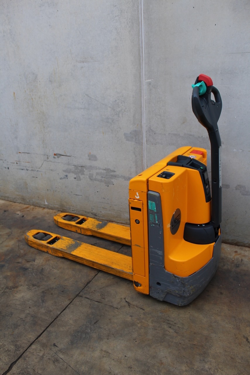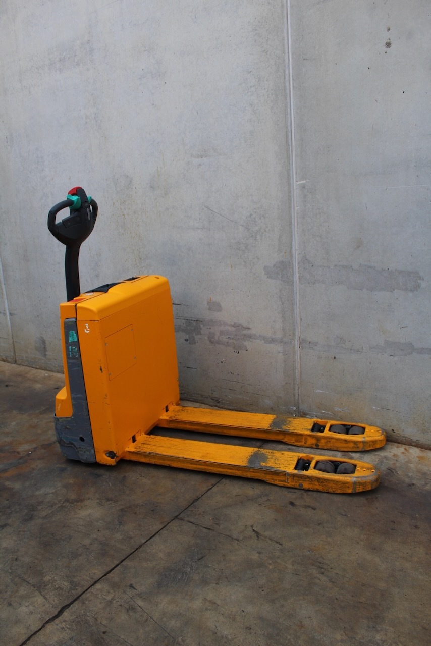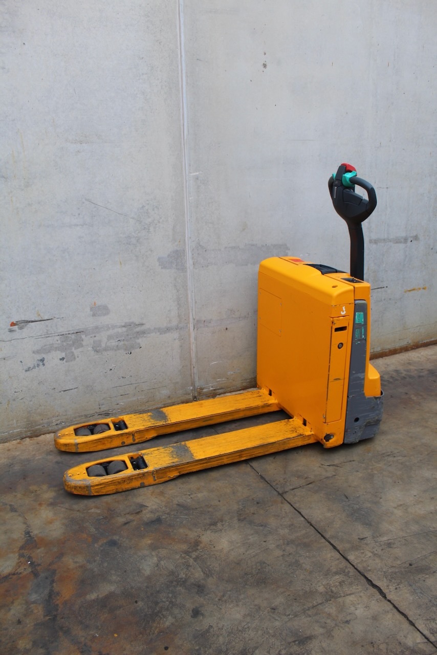 Jungheinrich EJE 112i LI-ION Load capacity: 1.200 Kg Lifting height: Mast: Fork: 1.150 x 540 mm Build height: Motorization: Electric Battery: 24v/40Ah Charger: 24 v incorporated Good condition, ONLY 389 working hours! Lithium battery.