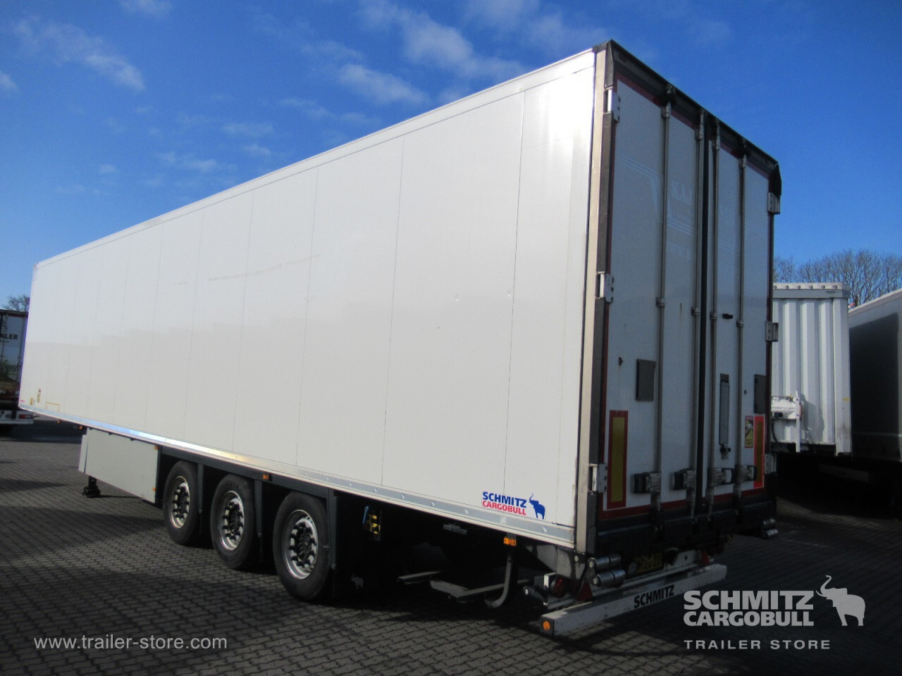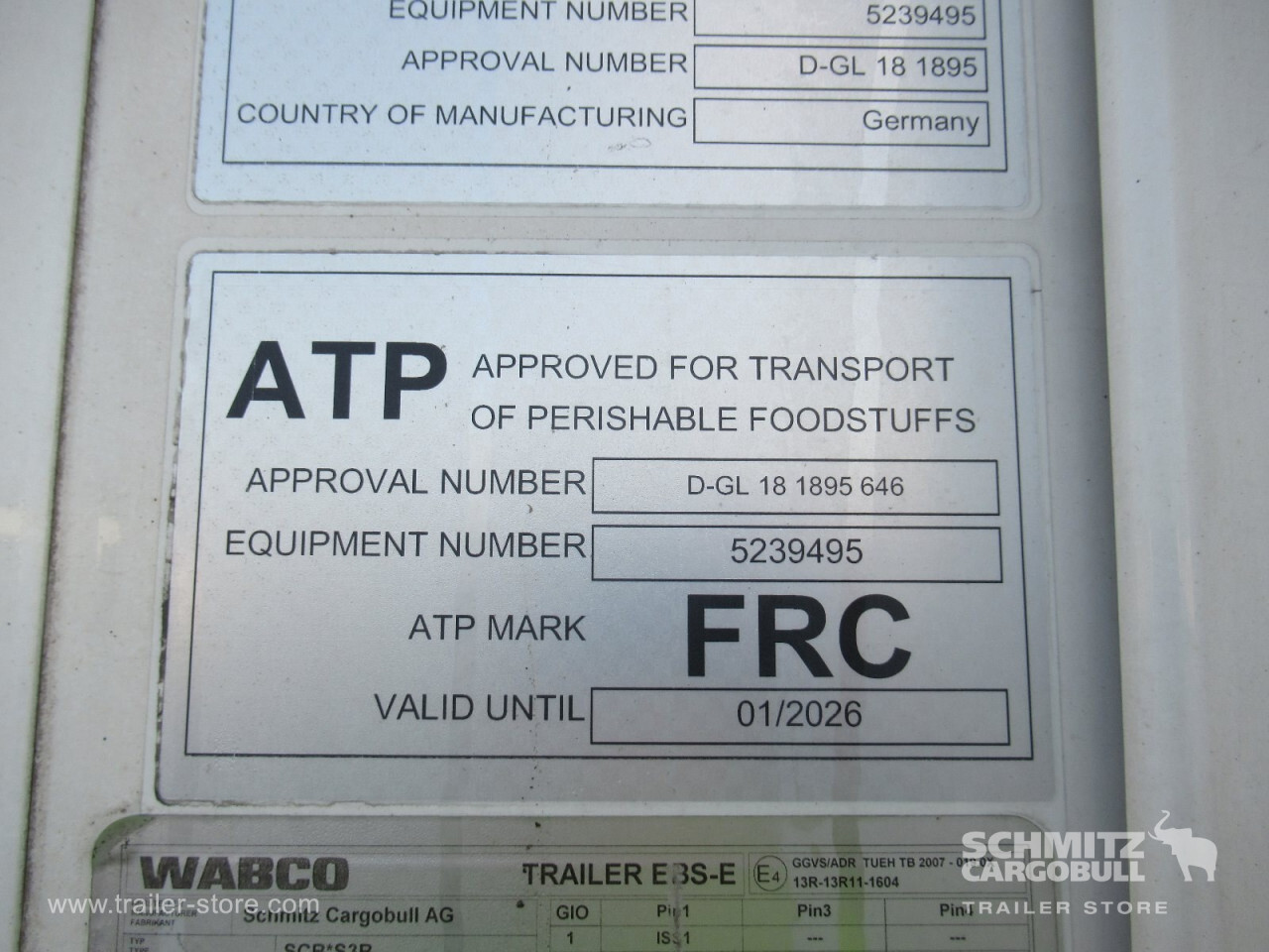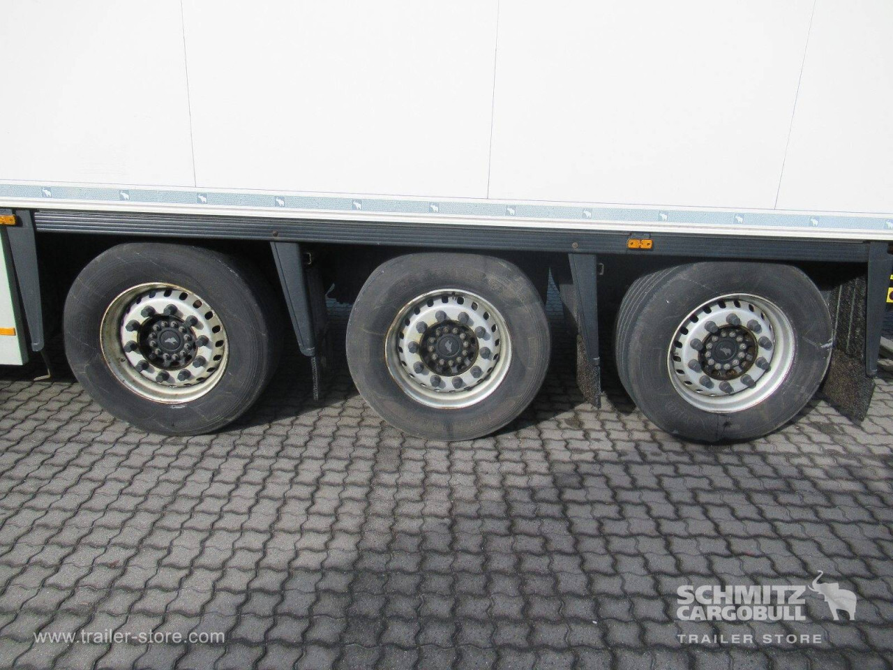 Remarks: **Safety**\\Rear underrun, Antilock Braking System ABS, Telematics system\\\\**Comfort**\\Roof ventilation with valve\\\\**Interior**\\EURO meat hanging system 60 mm, Multifunctional floor\\\\**Exterior**\\Air suspension, Pallet box, Spare wheel carrier double, Ferry lashings, Bolted chassis, 1x15 and 2x7 pin plug, Antispray\\\\**Brake system**\\Disc brake, Schmitz ROTOS\\\\**Floor**\\Aluminum floor\\\\**Wand**\\Stirnwand verstärkt\\\\**Wall**\\Frontwall recess for cooling, Wall thickness60 mm\\\\**Cooling unit**\\Schmitz Cargobull S.CU V 2.0, Diesel/Elektro, 20.108 Operating hours Diesel, 735 Operating hours electric\\\\**Loading area**\\Length 13.403 mm, Width 2.460 mm, Height 2.500 mm, Volume 82 m³\\\\**Tyre sizes**\\1. Achse: 385/55 R22.5 , Tread depth: 5 mm / 6 mm, 2. Achse: 385/55 R22.5 , Tread depth: 2 mm / 4 mm, 3. Achse: 385/55 R22.5 , Tread depth: 6 mm / 6 mm\\\\**Other dimensions and weights**\\GVW: 39.000 kg\\\\----