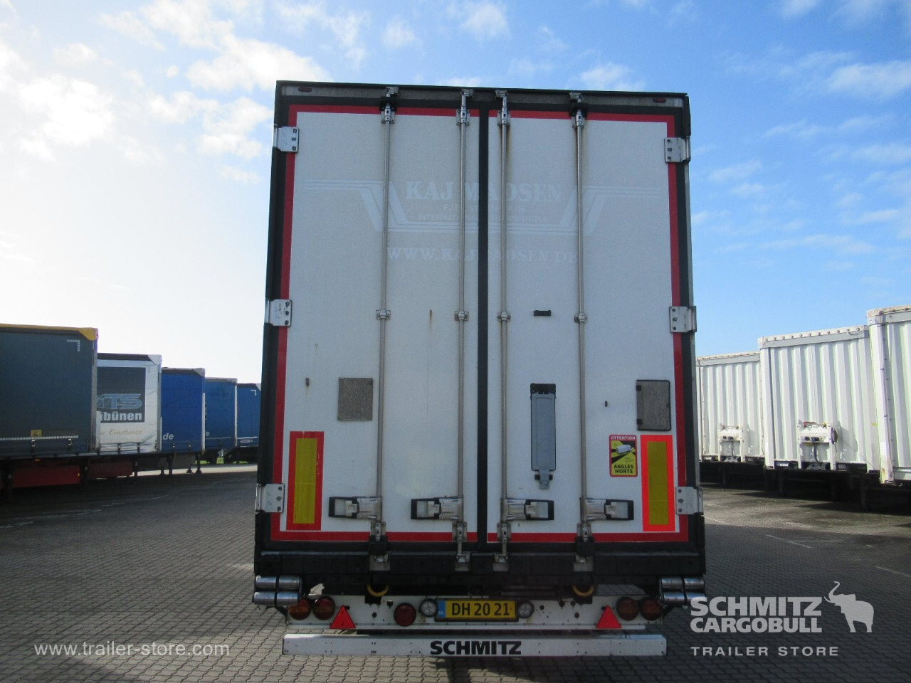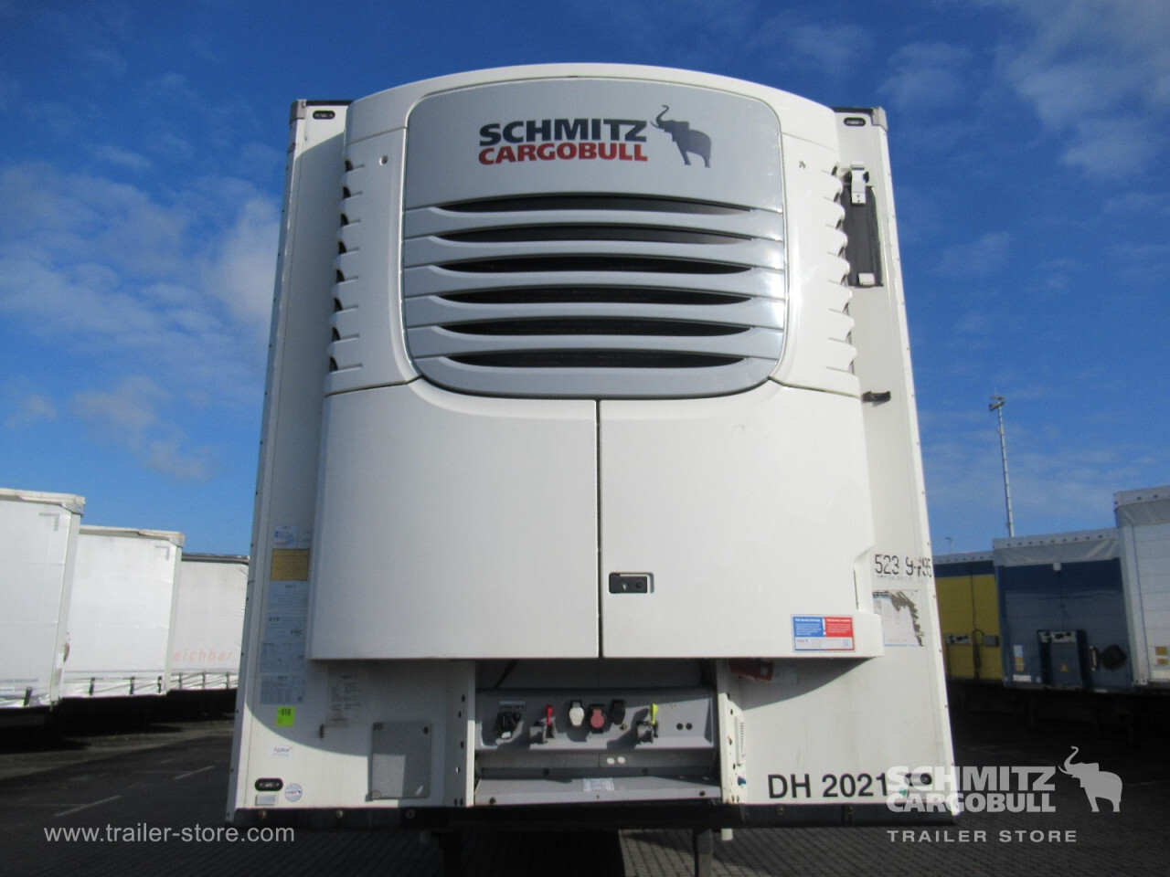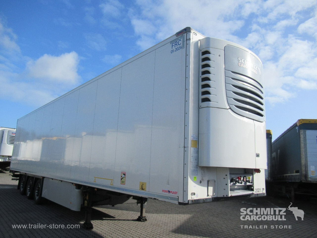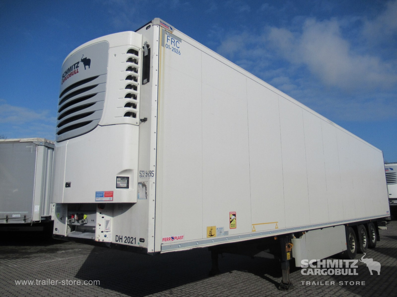 Remarks: **Safety**\\Rear underrun, Antilock Braking System ABS, Telematics system\\\\**Comfort**\\Roof ventilation with valve\\\\**Interior**\\EURO meat hanging system 60 mm, Multifunctional floor\\\\**Exterior**\\Air suspension, Pallet box, Spare wheel carrier double, Ferry lashings, Bolted chassis, 1x15 and 2x7 pin plug, Antispray\\\\**Brake system**\\Disc brake, Schmitz ROTOS\\\\**Floor**\\Aluminum floor\\\\**Wand**\\Stirnwand verstärkt\\\\**Wall**\\Frontwall recess for cooling, Wall thickness60 mm\\\\**Cooling unit**\\Schmitz Cargobull S.CU V 2.0, Diesel/Elektro, 20.108 Operating hours Diesel, 735 Operating hours electric\\\\**Loading area**\\Length 13.403 mm, Width 2.460 mm, Height 2.500 mm, Volume 82 m³\\\\**Tyre sizes**\\1. Achse: 385/55 R22.5 , Tread depth: 5 mm / 6 mm, 2. Achse: 385/55 R22.5 , Tread depth: 2 mm / 4 mm, 3. Achse: 385/55 R22.5 , Tread depth: 6 mm / 6 mm\\\\**Other dimensions and weights**\\GVW: 39.000 kg\\\\----
