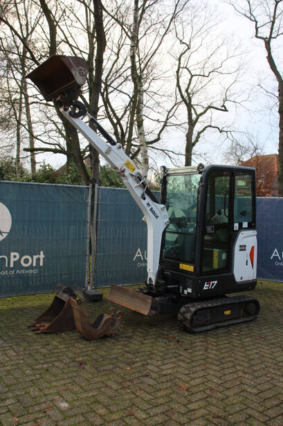 Brand: Bobcat Type: E17 C Serial number: B4PJ11883 Year of construction: 2021 Fuel: Diesel Engine power: 10.0 kW Quick change: Yes Operating hours read: 1069 h Running gear: Tracks Machine weight: 1594 kg Color: white