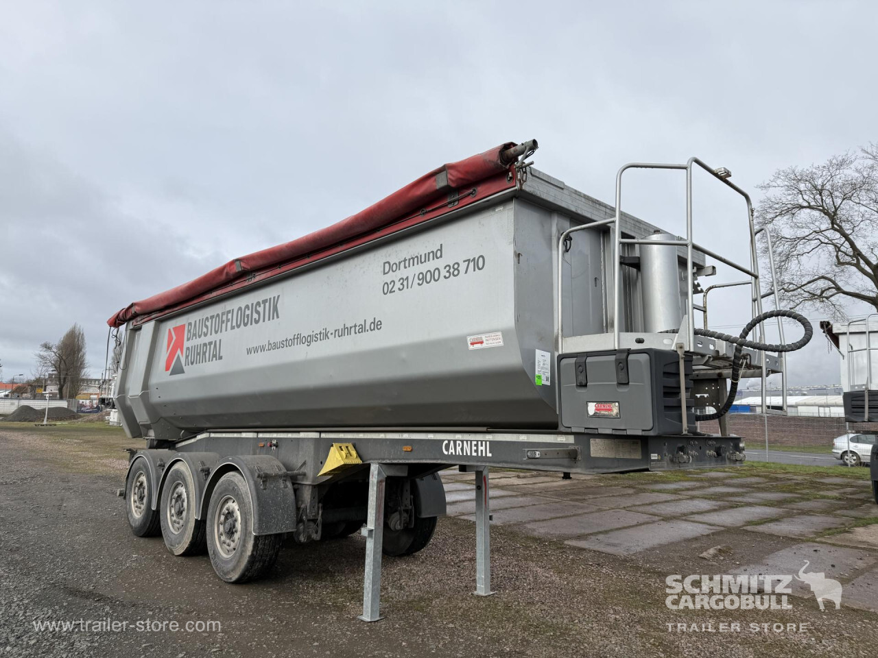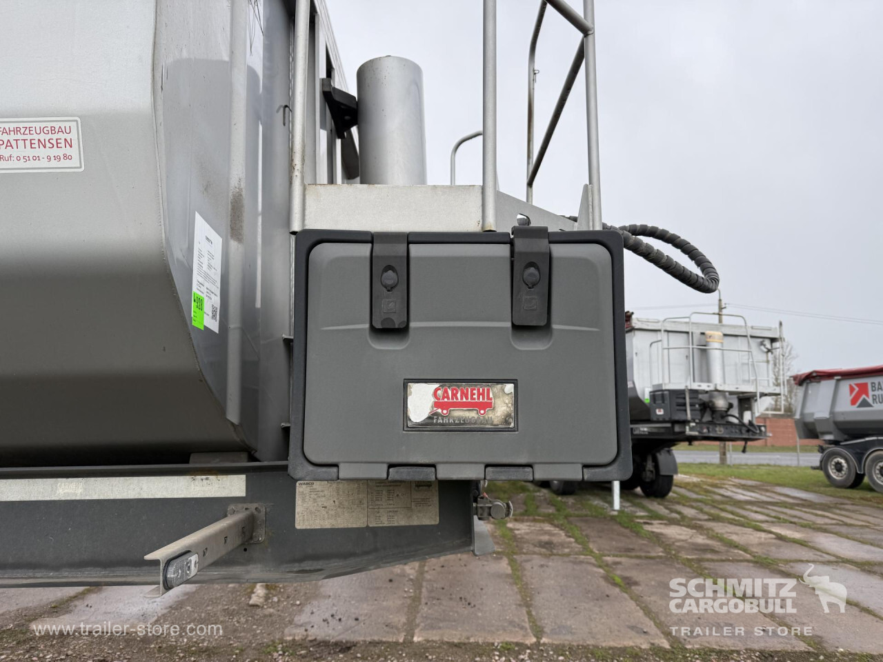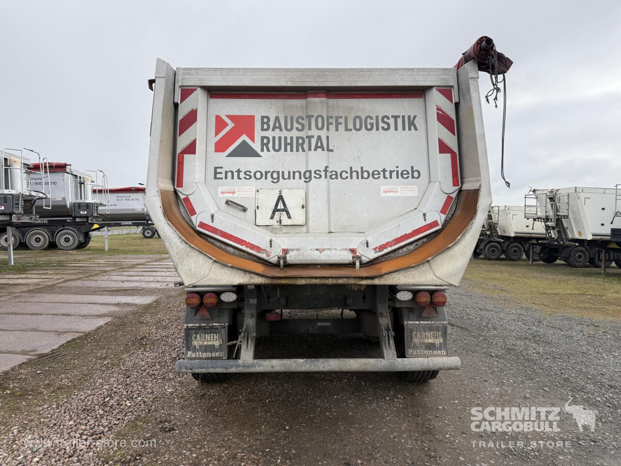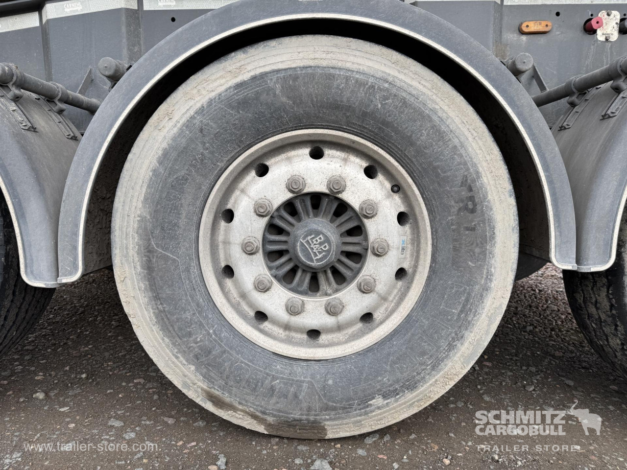 Remarks: **Safety**\\Hinged rear underrun, Antilock Braking System ABS\\\\**Exterior**\\Air suspension, Toolbox, Recessed pendulum tailgate, Roof rolling tarpaulin, Access platform, 1x15 pin plug, Light alloy rims\\\\**Brake system**\\Disc brake\\\\**Loading area**\\Length 7.100 mm, Width 2.340 mm, Height 1.500 mm, Volume 24 m³\\\\**Tyre sizes**\\1. Achse: 385/65 R22.5 , Tread depth: 10 mm / 5 mm, 2. Achse: 385/65 R22.5 , Tread depth: 13 mm / 9 mm, 3. Achse: 385/65 R22.5 , Tread depth: 14 mm / 11 mm\\\\**Other dimensions and weights**\\GVW: 35.500 kg\\\\----