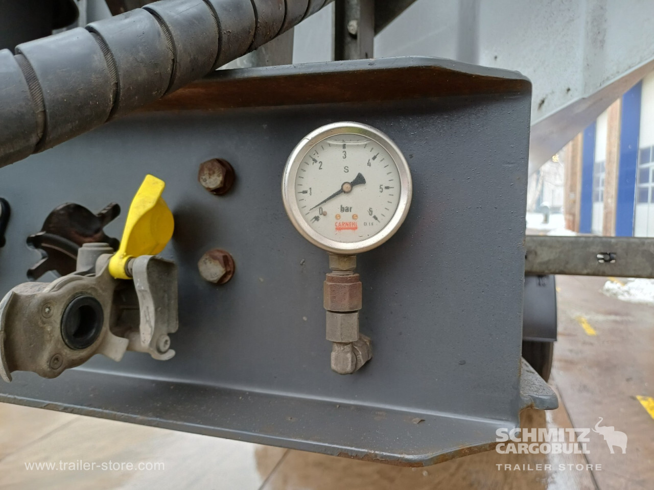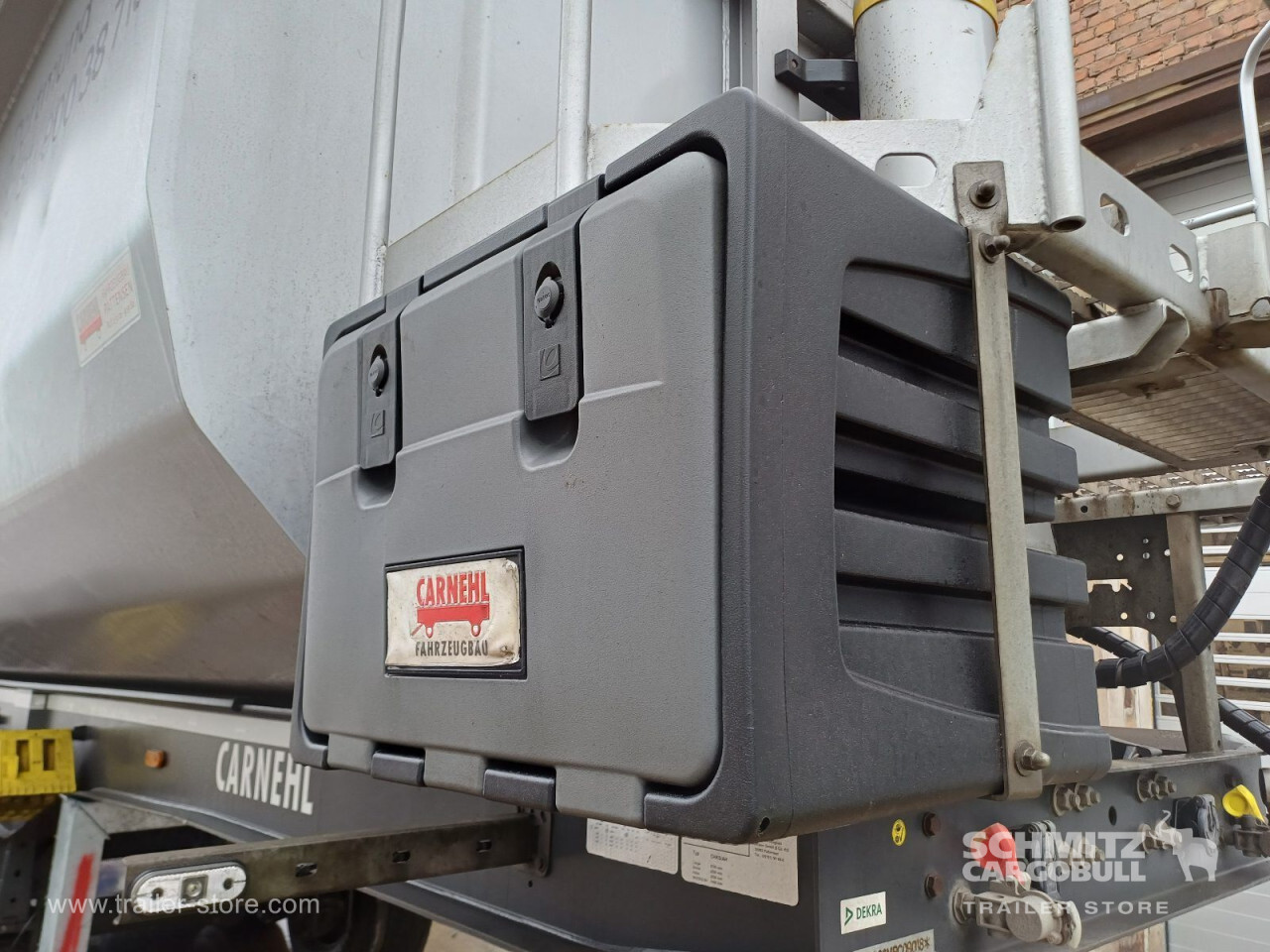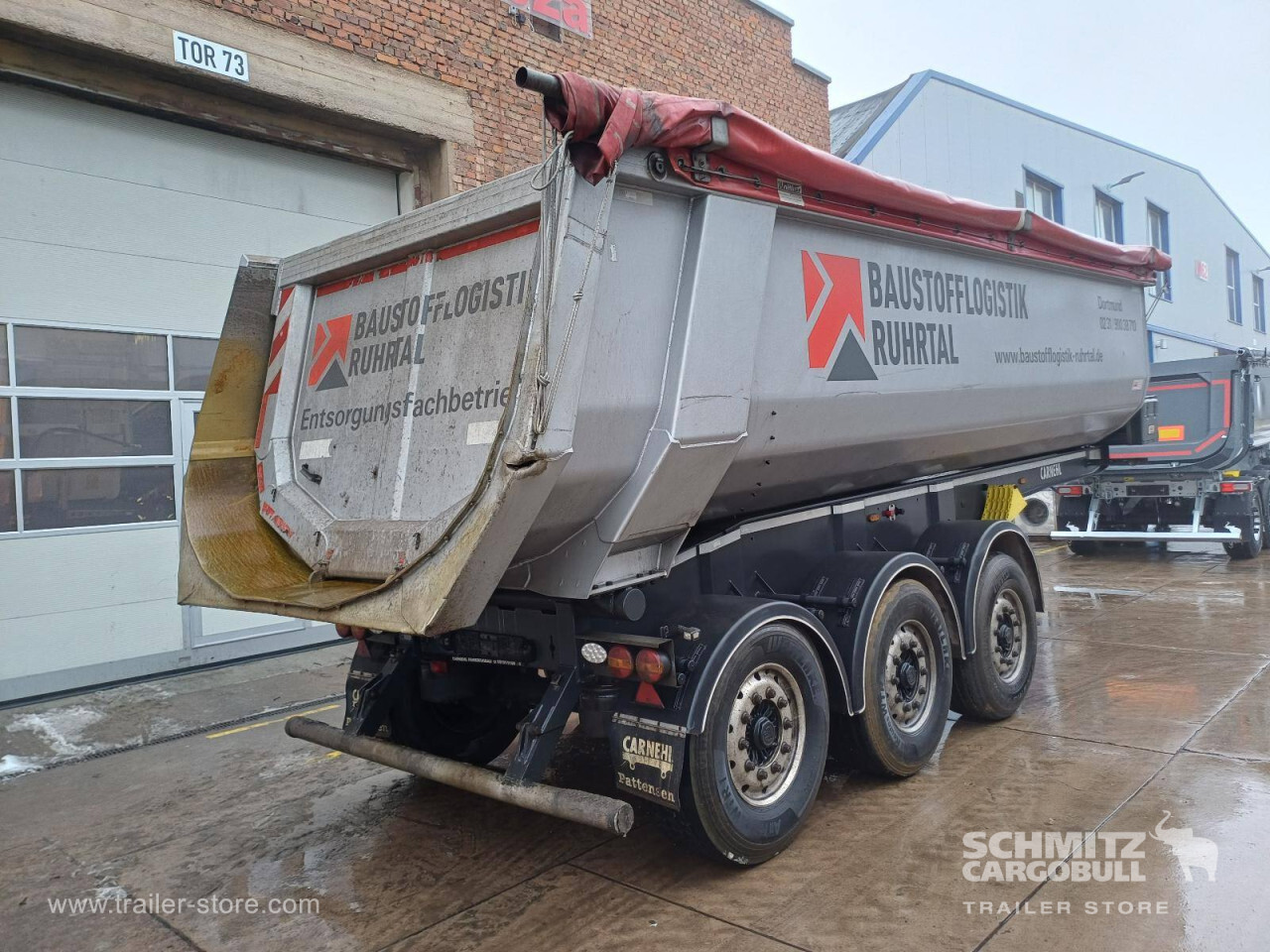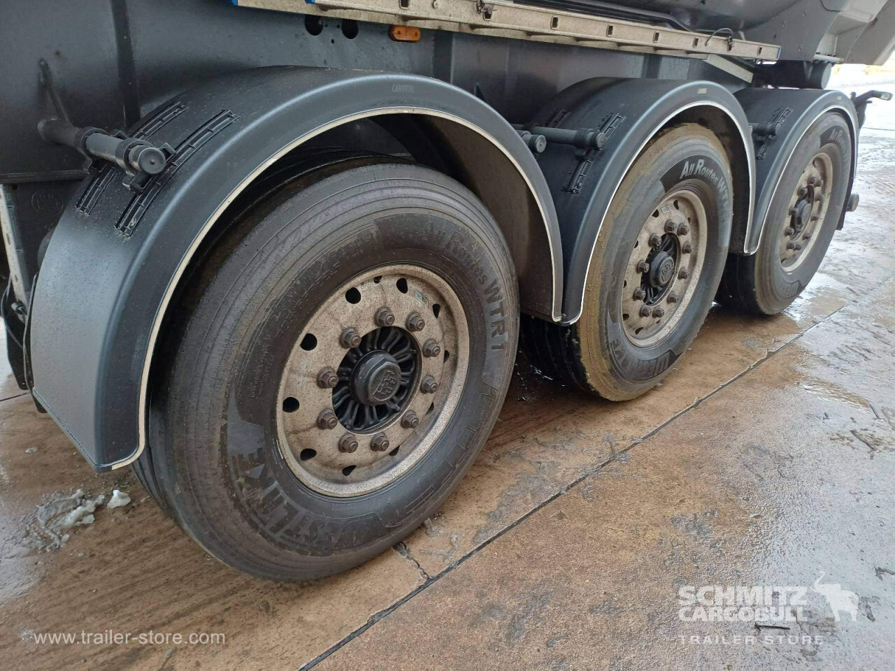Remarks: **Safety**\\Hinged rear underrun, Antilock Braking System ABS\\\\**Exterior**\\Air suspension, Toolbox, Recessed pendulum tailgate, Roof rolling tarpaulin, Access platform, 1x15 pin plug, Light alloy rims\\\\**Brake system**\\Disc brake\\\\**Loading area**\\Length 7.100 mm, Width 2.340 mm, Height 1.500 mm, Volume 24 m³\\\\**Tyre sizes**\\1. Achse: 385/65 R22.5 , Tread depth: 5 mm / 14 mm, 2. Achse: 385/65 R22.5 , Tread depth: 5 mm / 11 mm, 3. Achse: 385/65 R22.5 , Tread depth: 14 mm / 12 mm\\\\**Other dimensions and weights**\\GVW: 35.500 kg\\\\----