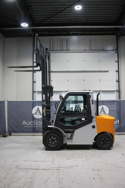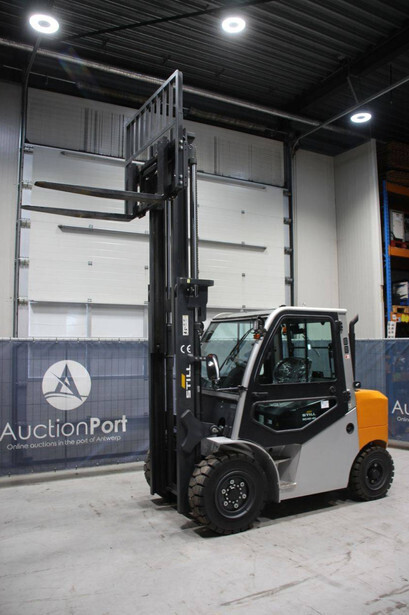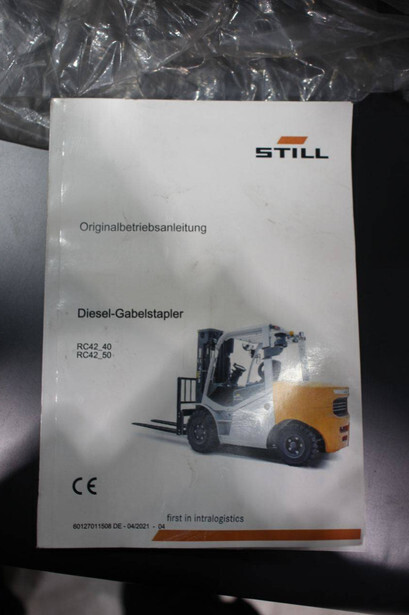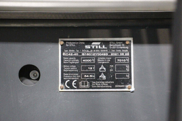 Brand: Still Type: RC42-40 Serial number: B16012Y00493 Year of construction: 2021 Fuel: Diesel Mast type: Duplex Sideshift: Yes Lifting capacity: 4000 kg Lifting height: 4000 mm Reading operating hours: 8 h Machine weight: 7010 kg Tires: Solid tires Color: gray