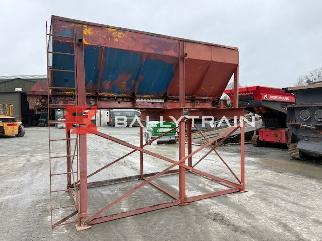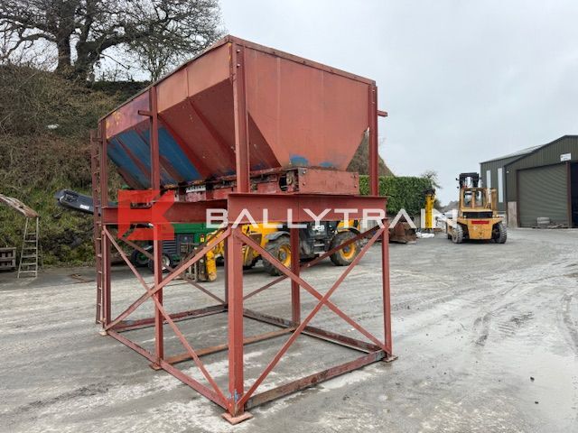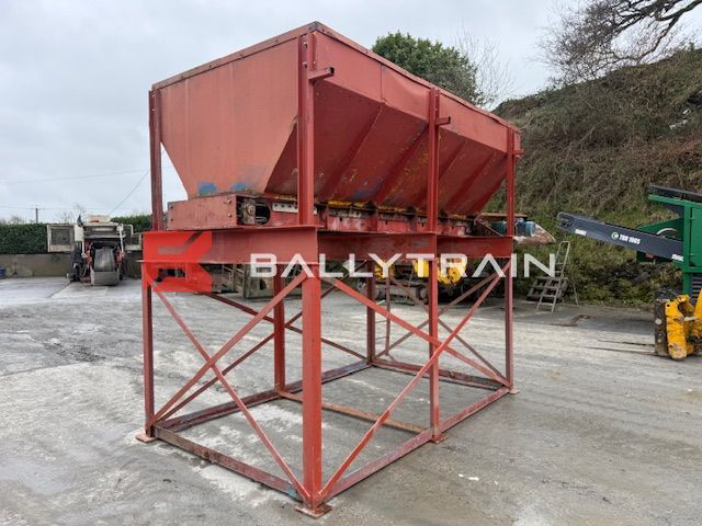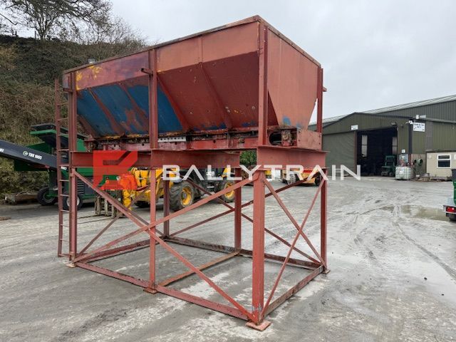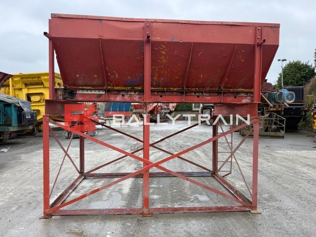 Electric Feed Hopper (4M Long) Electric Feed Hopper for sale, used feed hopper. Static aggregate hopper – 4m long. Feed bin/hopper is built on support frame and come with draw out conveyor under it, conveyor belt is 580mm wide. 6 feet/legs on the support frame meaning it can be bolted into place. Ladder up one side to allow access to top of hopper bin for service etc, Plain belt on conveyor and all rollers seem good & turning on the conveyor. This feed hopper was working on a light material like limestone etc, This hopper is Electric drive, conveyor is driven by electric motor. Polyethylene and rubber belting installed inside the hopper/bin to take impact of material and help prevent wear to hopper. This is very useful piece of kit that can be can be used for aggregate, stone, soil, wood chips, recycling material, concrete plant, tar plant and many other applications. Single bin that will take the product out and then blend it on the conveyor belt. Comes complete as per images nothing more and nothing less. Very Nice Aggregate Bin which is ready for installation into a Plant or can be used for various other applications. You can purchase this feed hopper today. Electric Feed Hopper (4M Long) Dimensions of the Bin itself: 370cm Long x 190cm Wide (At top of bin) 115cm from top of bin to top of belt 30cm from top of bin down before it starts to slope in 580mm wide belt This feed bin is around cubic meters and will hold around ton of material. Dimensions of the overall Feed Hopper: 4.23m Long 2.12m Wide – (Motor and Ladder makes it 2.22m wide) 3.21m High – From ground to top of bin. Get a quote on shipping to your site or nearest port by contacting us today. Selection of Crushers and screeners equipment always in stock. This Electric Feed Hopper will be loaded on transport in this price. If you require more information please Click here to contact us Make Electric Feed Hopper Availability In Stock Fuel Electric driven Mobile No