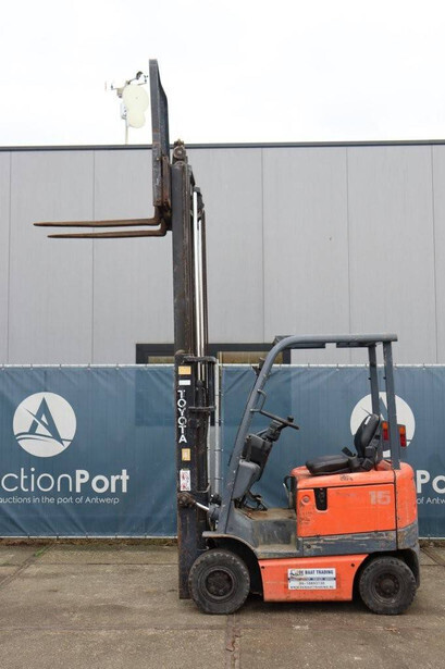 Brand: Toyota Type: FB15 Serial Number: Not known Year of construction: Not known Fuel: Electric Mast type: Duplex Sideshift: Yes Lifting capacity: 1500 kg Lifting height: 4000 mm Operating hours read: 30640 h Machine weight: Not known Tires: Solid tires Color: orange